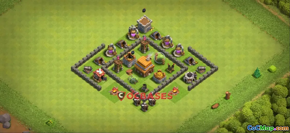 A Town Hall 4 farming base in Clash of Clans is specifically designed to protect resources while allowing players to accumulate wealth efficiently. At this level, players often focus on maximizing resource storage and creating a solid defense to safeguard their elixir and gold from enemy attacks. The layout typically includes strategically placed defenses such as archer towers and cannons, which help in repelling intruders, while placing storages in a manner that makes it harder for opponents to access them directly.