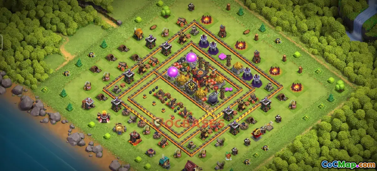 Discover the best Town Hall 10 farming and war base for Clash of Clans. Anti 3-star, anti-dragon, anti-hog, and versatile defenses. Copy the base now!