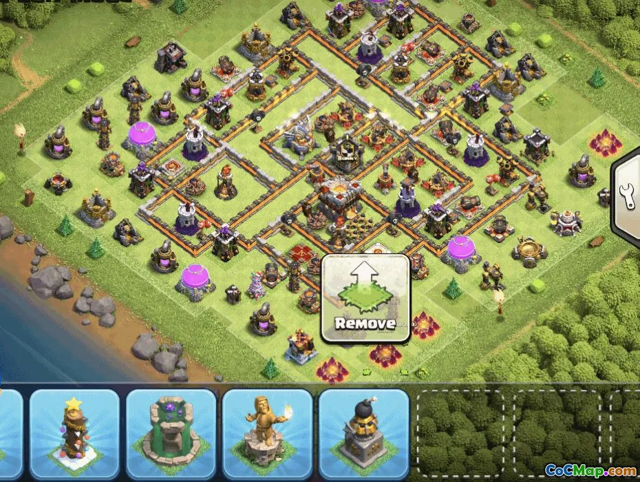 Discover a copy-ready Town Hall 11 base layout engineered for home village, trophy, and war defense. The design creates a strong central core with well-placed storages, compartmented walls, and layered defenses that slow both air and ground attacks. By balancing resource protection with offensive potential, this CoC map layout helps you climb trophies while staying clan-war viable. It includes distinct layouts optimized for map rotation and stable performance across typical TH11 metas.