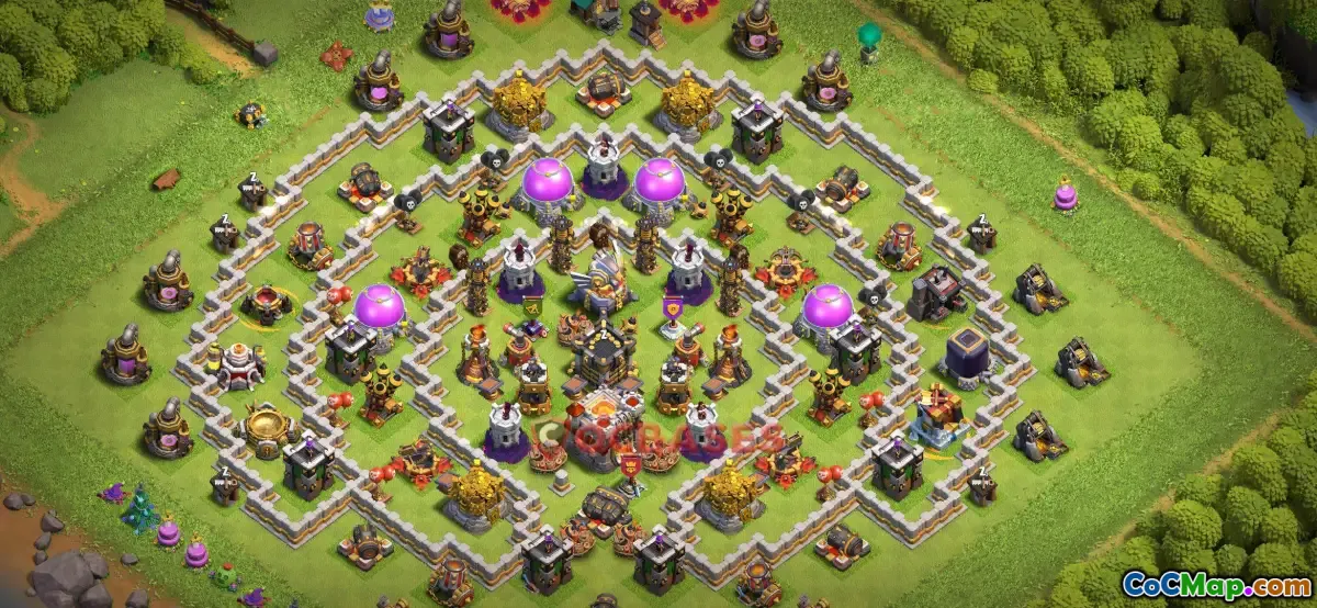 The Town Hall 11 farming base in Clash of Clans is designed to maximize resource protection while enabling players to efficiently gather and defend. This base layout typically features well-placed storages in central locations to prevent opponents from easily raiding resources. Defenses such as X-Bows, Inferno Towers, and Archer Queens are strategically positioned to cover key areas, helping to fend off attackers focused on resource raids. The primary goal is to safeguard the loot loot while maintaining a strong defense to deter opponents from launching successful attacks.