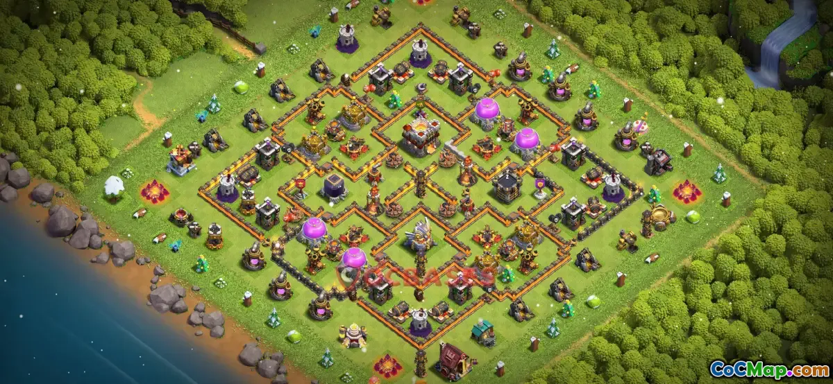 The Town Hall 11 trophy base in Clash of Clans is a strategic layout designed to help players defend their trophies and prevent opponents from easily winning attacks. This base setup incorporates a mix of well-placed defenses such as cannons, archer towers, and X-bows to create a balanced and robust defense. Proper placement of these defenses is crucial to intercept attacking units early and minimize damage to the Town Hall, which is often a primary target for attackers looking to win trophies.