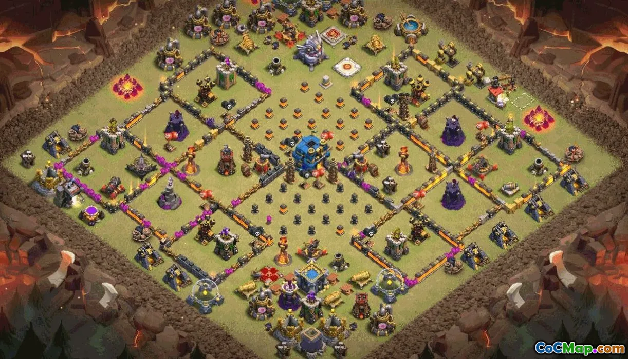 Key features include a layered outer ring that disrupts funneling, balanced air defenses and wizard towers for protection against both air and ground attacks, and trap placements that punish splits and sneaky swoops. The design suits home village play, trophy base duties, and war map setups, and it adapts well to CoC maps and other base layouts you may use in TH12 season pushes.