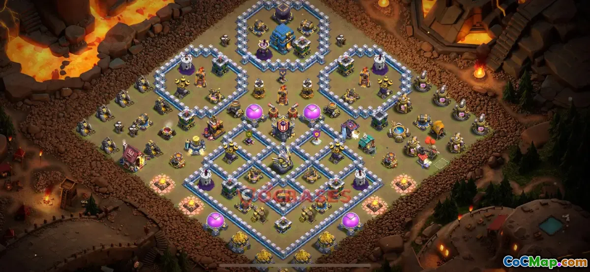 The Town Hall 12 Clan War League (CWL) base is designed to defend against enemy attacks and prevent opponents from earning three-star victories. This specific base layout prioritizes strong defensive structures and strategic placement of traps to catch attackers off guard. Players focusing on defending their TH12 bases often incorporate well-positioned Inferno Towers, Archer Queens, and Queen Walk setups to lure and eliminate enemy troops effectively.