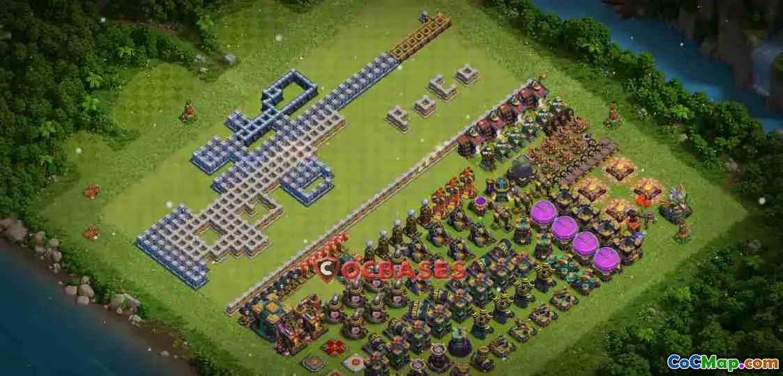 The Town Hall 14 fun base in Clash of Clans, created by the player Poco Vai, introduces an innovative layout that promises to enhance gameplay. This base design is tailored for those looking to explore an asymmetric structure, which can effectively confuse opponents during attacks and provide a unique defensive advantage. The design prioritizes fun and engagement, making it appealing to players who want something different from conventional base setups.