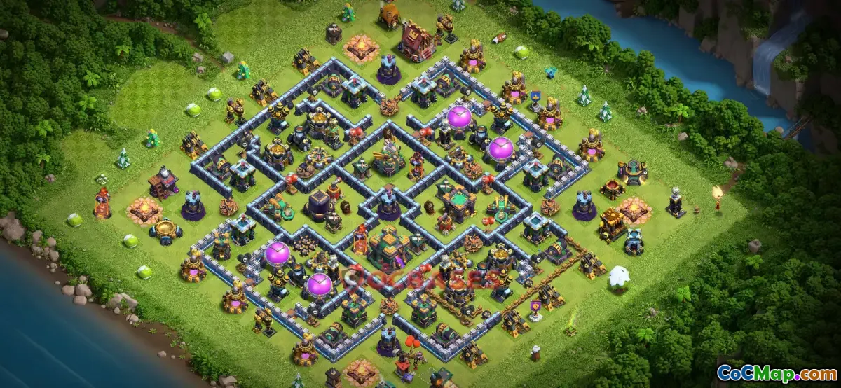 Explore the ultimate Town Hall 14 hybrid base design in Clash of Clans. Optimize your defenses and attack strategies. Copy your perfect base now!