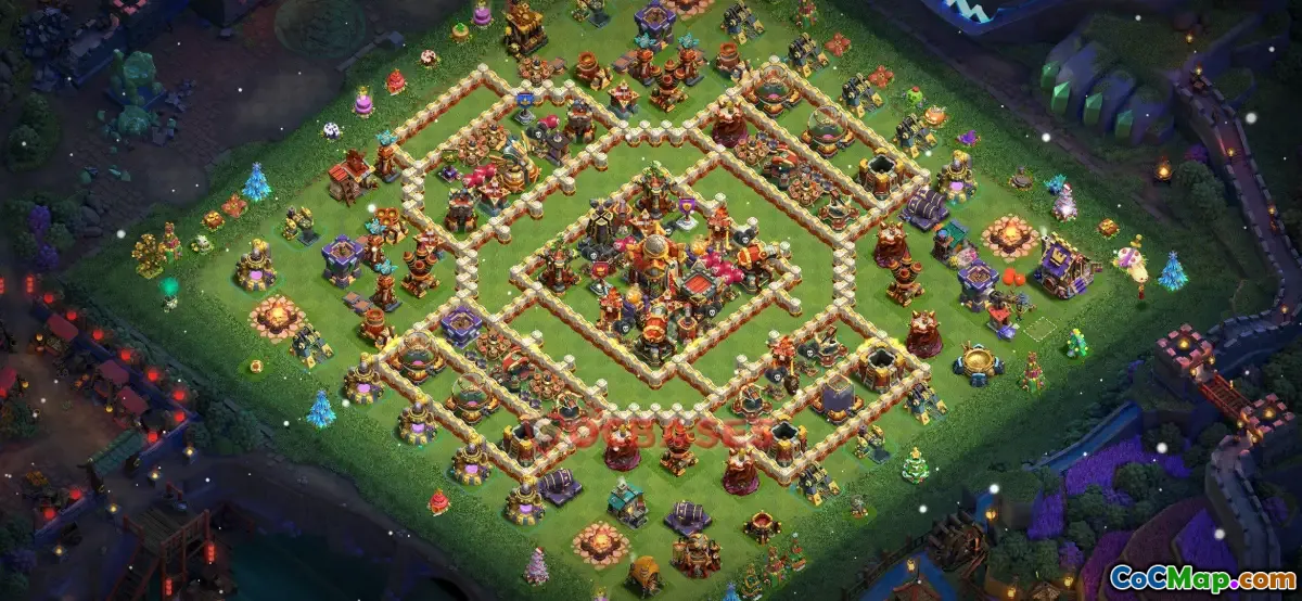 The Town Hall 16 trophy base in Clash of Clans is a strategically designed layout created to defend a player's trophies from attackers. These bases are carefully constructed to protect the Town Hall, which is vital for victory and progress in the game. The design often incorporates well-placed walls, traps, and defensive structures to thwart enemy attacks and maintain a high trophy count. Such bases are popular among players who want to prevent trophy loss during raids or to compete in higher leagues.