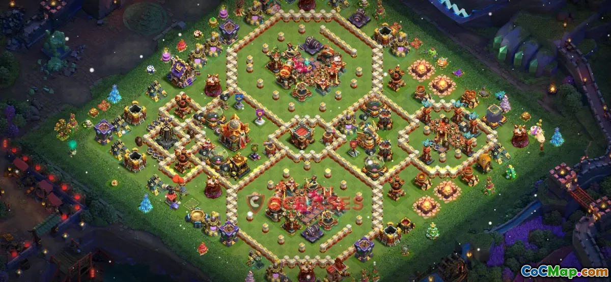 The Town Hall 16 trophy base design in Clash of Clans is a carefully crafted layout intended to protect a player's trophies and prevent opponents from easily defeating their base. These base setups are optimized to defend against various attack strategies and to maintain a higher trophy count. Players often seek these designs to improve their defensive capabilities and ensure their hard-earned trophies are not lost during battles.