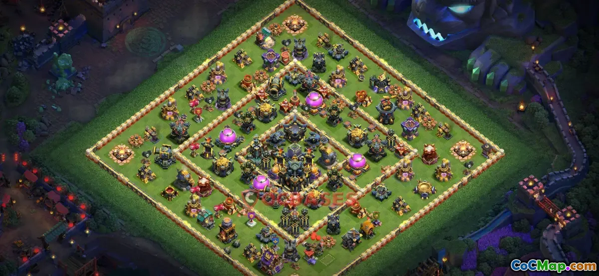 The Town Hall 17 Farming Base in Clash of Clans is specifically designed to maximize resource protection during farming. Its layout typically features well-placed defensive structures and resource storages to prevent enemy attacks from stealing too many resources. This base design aims to balance defense and convenience, ensuring that players can efficiently gather and protect their resources while minimizing losses during raids.