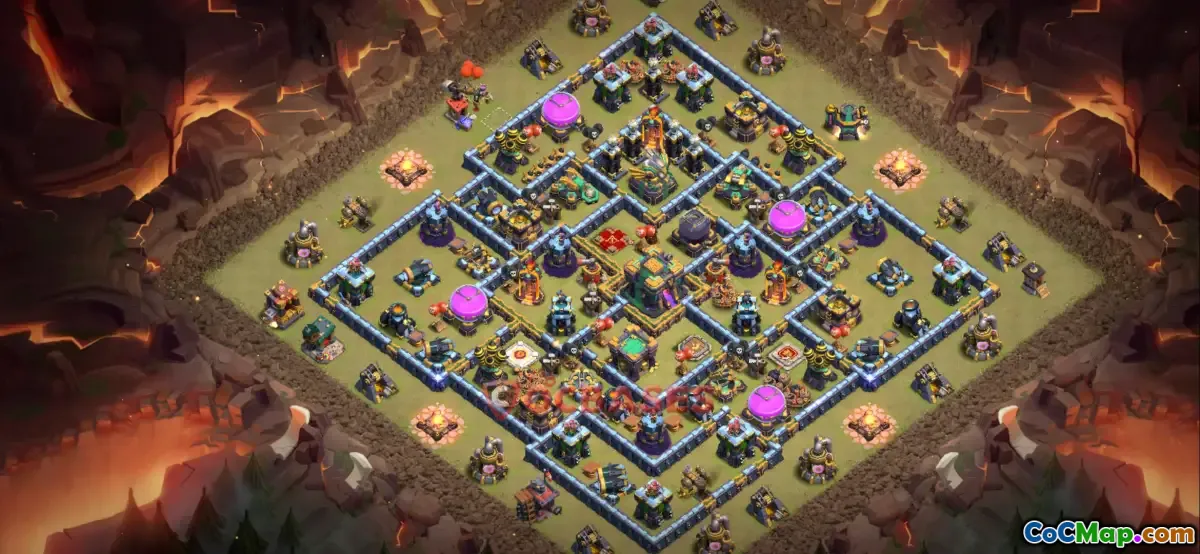 Furthermore, the anti-ground elements of the Town Hall 14 War Base provide substantial protection against ground-based troops, thus making the overall defense comprehensive. By considering all types of attacks—air and ground—the layout increases the chances of successfully defending against a variety of attack strategies in Clan War Leagues and regular wars. For players looking to improve their defensive standings, using this well-structured Town Hall 14 War Base can make a significant difference.