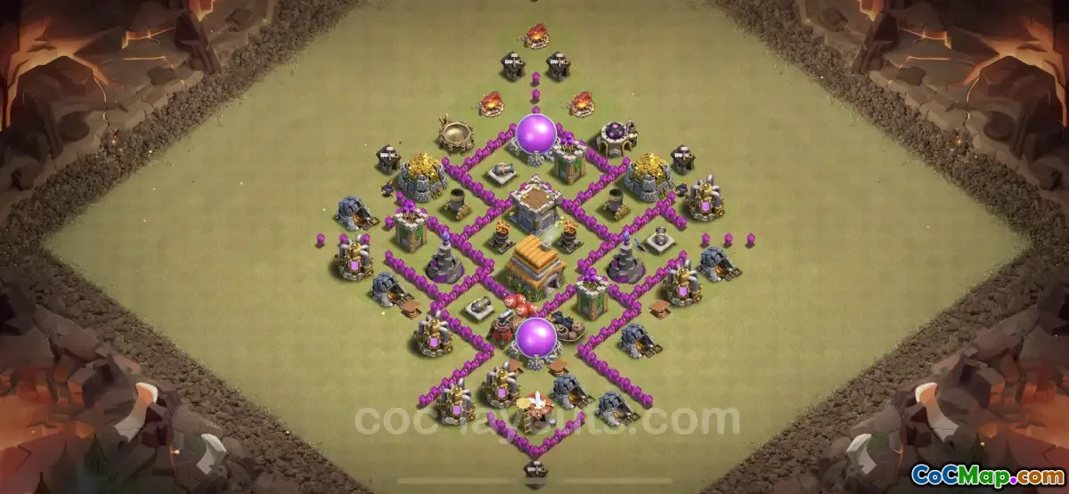 TH6 hava savunma üssü düzeni genellikle savunmaları Belediye Binasına ve Klan Kalesi ve kaynaklar gibi diğer hayati yapılara yakın yerleştirmeye odaklanır. Bu strateji yalnızca bu kilit alanları güçlendirmekle kalmıyor, aynı zamanda saldırganlara karşı bir tampon oluşturuyor. Oyuncular, savunmaları kümelendirerek ateş güçlerinden yararlanabilir ve gelen birliklerin yoğun bir saldırıyla karşılanmasını sağlayabilir, böylece baskınları püskürtme şansını artırabilir.