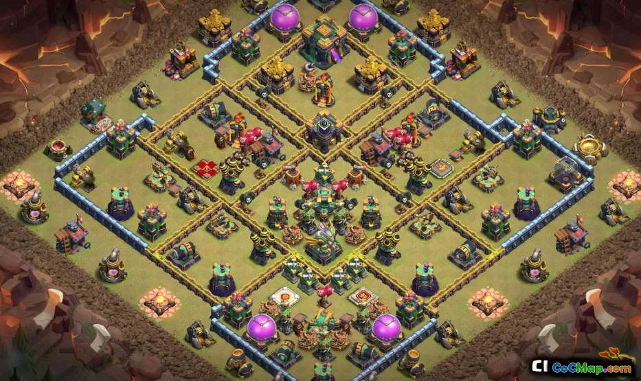 Town Hall 14'teki Clash of Clash için temel düzen, ev köyü yükseltmeleri, savaş üsleri ve kupa üsleri için çeşitli stratejiler içeriyor. Her düzen, savunmayı geliştirmek, kaynak yönetimini optimize etmek ve oyunda ilerlemek isteyen oyuncular için genel oyunu geliştirmek için özel olarak tasarlanmıştır. Oyuncular bu seviyeye ulaştıkça, güçlü bir üssün önemi, düşman saldırılarını önlemek ve klan savaşlarında zaferleri güvence altına almak için kritik hale gelir. İyi yapılandırılmış düzenler, rakiplerin savunma hatlarına nüfuz etmesini ve kaynakları çalmasını zorlaştırabilir.