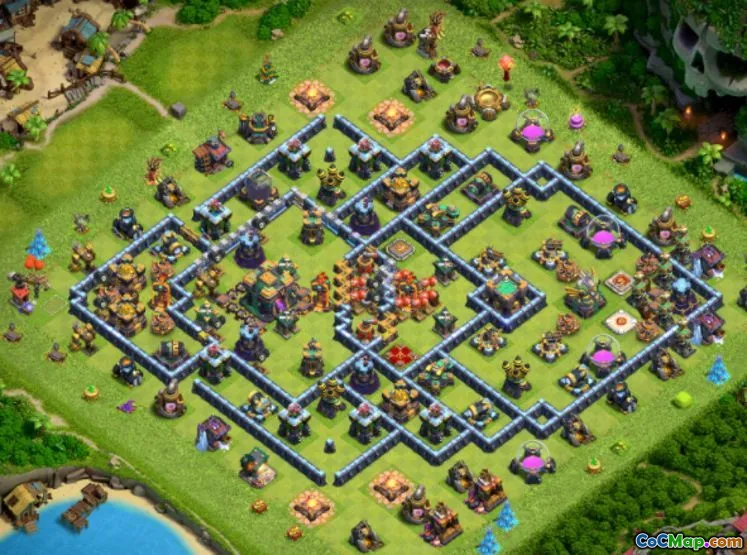 Clash of Clans oyunu, özellikle oyuncuların hem savunma hem de saldırgan yetenekler için köylerini optimize edebilecekleri Town Hall 14'teki oyuncular için çeşitli rekabet stratejileri ve düzenleri vardır. Bu seviyede, oyuncular bir temel düzeni oluştururken düşünceli planlama gerektiren gelişmiş birliklere, binalara ve tuzaklara erişebilirler. Amaç, klan savaşlarına ve diğer savaşlara hazırlanırken kaynakları, kupaları ve kupaları korumaktır.