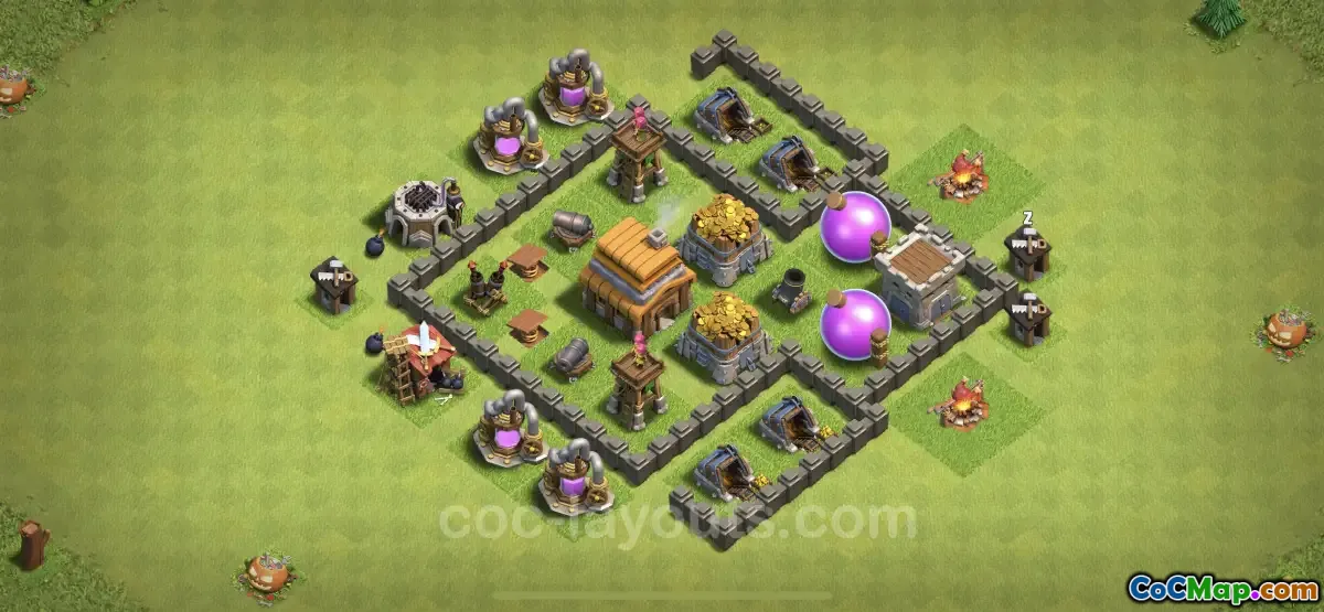 Clash of Clans'da oyuncular Belediye Binaları için en yüksek seviyelere ulaşmaya çalışırlar ve TH4 Maksimum Seviye düzeni, kaynak savunmasını optimize etmek için özel olarak tasarlanmıştır. Bu aşamada oyuncular, gelecekteki ilerlemelere hazırlanırken aynı zamanda oyun içi kaynaklarını koruyabilmelerini sağlamak için üslerini yükseltmeye odaklanıyorlar. Belediye Binası Seviye 4, gelişmiş savunma mekanizmalarına ve kaynak depolama yeteneklerine olanak tanıdığından oyuncular için çok önemlidir ve bu da onu oyunun ilerlemesinde önemli bir aşama haline getirir.