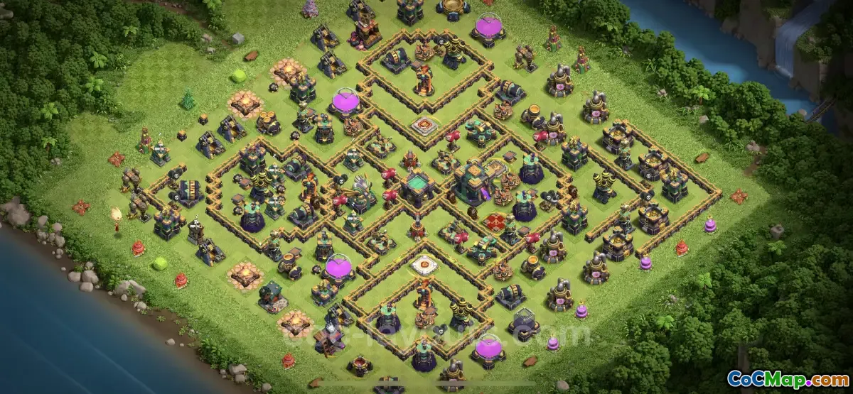 The Best Anti 2 Stars Base for Town Hall Level 14 is designed specifically to defend against attacks from various troop types, particularly focusing on Air units and Electro Dragons. This base layout is strategically arranged to minimize the risk of opponents scoring two stars. By implementing effective design principles, the base can secure its defenses and withstand formidable assaults, making it an ideal choice for Town Hall 14 players aiming for a robust defense.