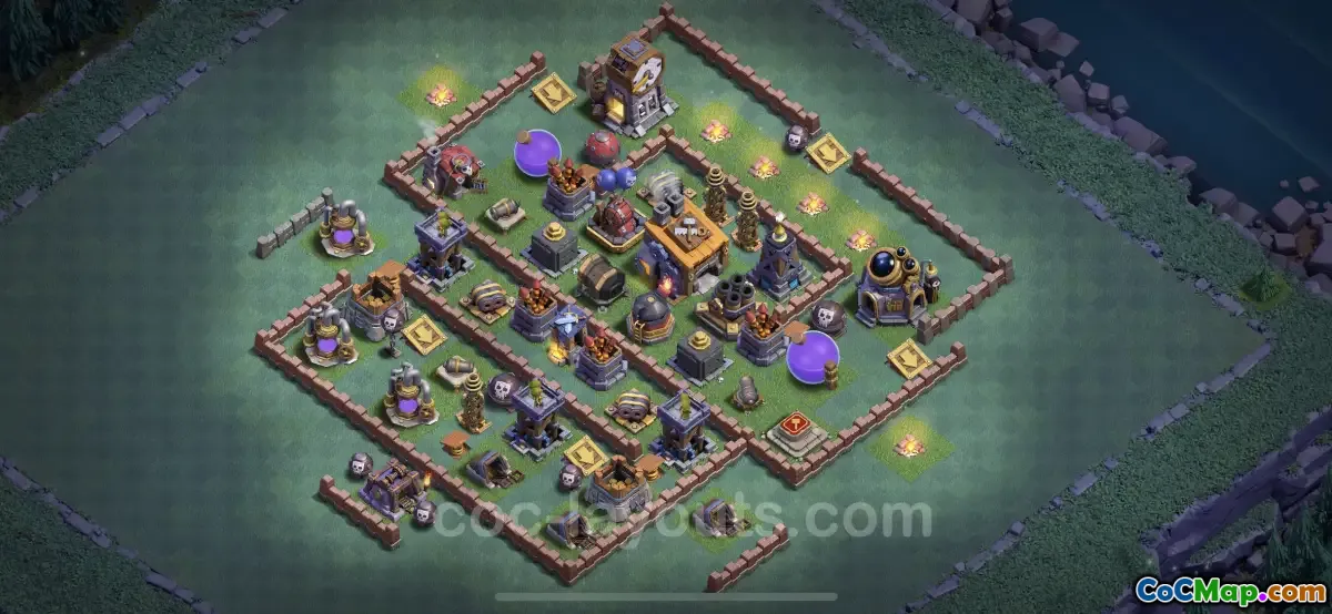 Discover the best Builder Hall Level 8 anti-everything base design for Clash of Clans. Safe, strong, and ready for battle! Copy now for unbeatable defense!
