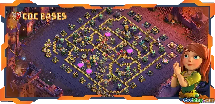 Built with anti-everything tactics in mind, this layout maximizes trap placement and compartmentalization, making it difficult for attackers to breach with common strategies. Perfect for clans aiming to secure victories and maintain high trophy counts, this base setup is a must-try for serious Clash of Clans players seeking reliable defense on Town Hall 14.