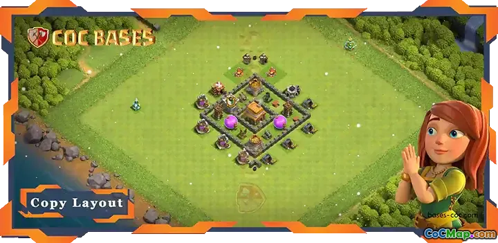 For added convenience, a direct link to the layout is provided, allowing easy implementation within your game. This anti-everything design is perfect for TH4 players seeking a resilient and resource-safe base that adapts to various attack types, helping you progress faster in Clash of Clans.