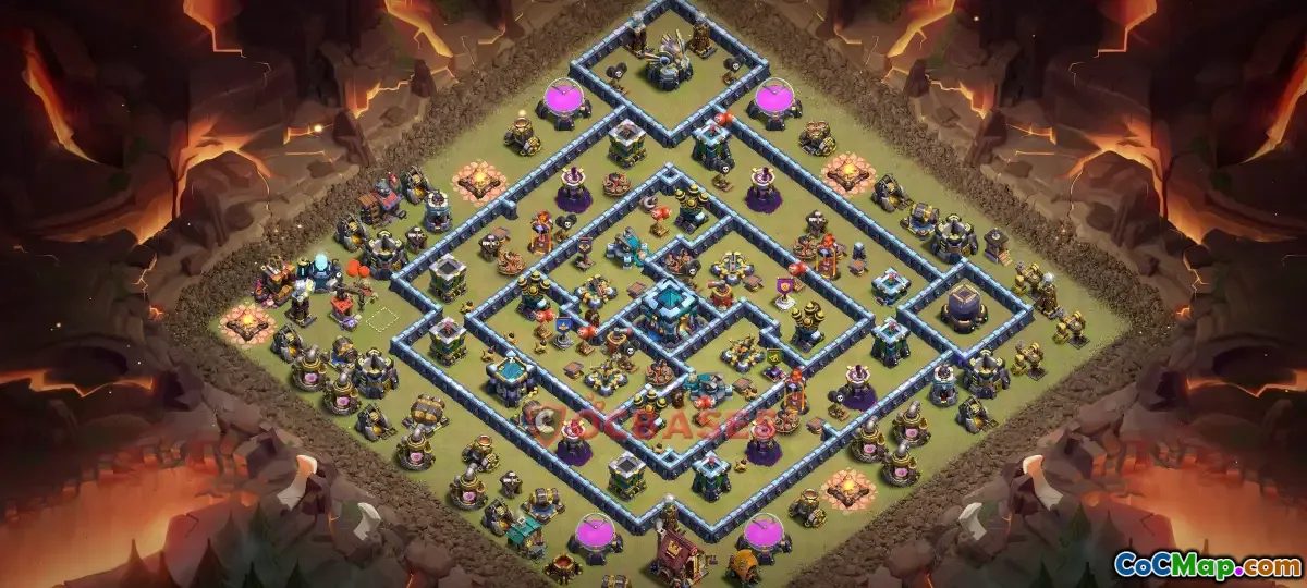 The Town Hall 13 (TH13) farming base in Clash of Clans is designed specifically to help players gather resources efficiently while defending against attacks. These bases are structured to protect key resource storages, such as gold and elixir, by positioning them centrally and surrounding them with strong defenses. A well-designed farming TH13 layout minimizes the risk of losing large amounts of resources when attacked by other players, making it ideal for players focused on upgrading their buildings and troops.