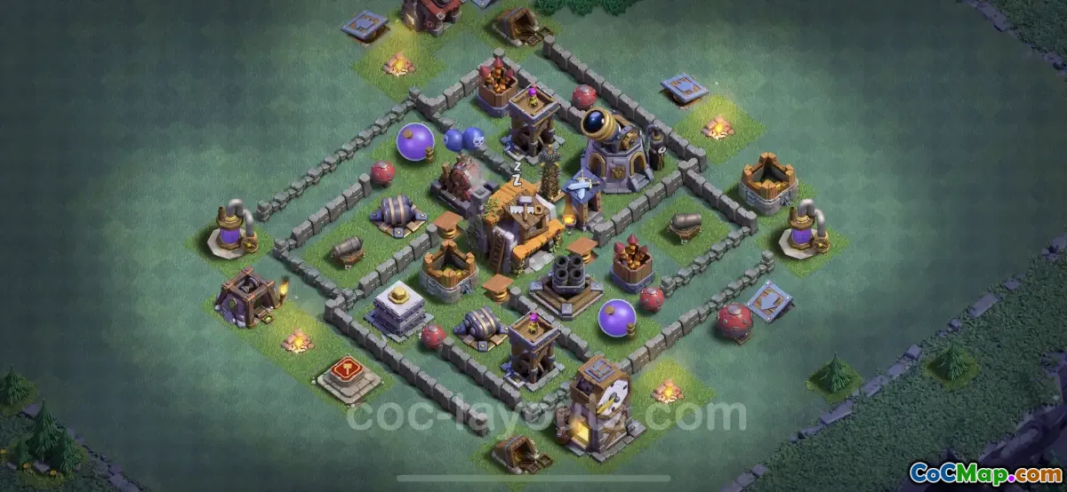 This specific base design is crafted to leverage the unique features available at Builder Hall Level 5. Players have access to a variety of defensive buildings and traps that can be strategically placed to optimize their base's defense. With careful placement, this layout makes it challenging for attackers to navigate through defenses and reach the Builder Hall itself. In doing so, players can effectively reduce the risk of losing stars and maintain a stronger defensive record in competitive play.