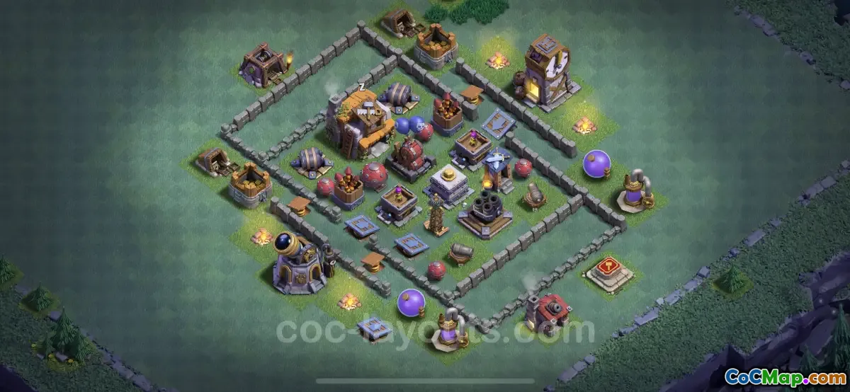 The Best Builder Hall Level 5 Base in Clash of Clans is designed to provide players with an optimal defense strategy. At this level, the base layout is essential for protecting resources and preventing attacks from enemy players. The layout features strategic placement of defenses, such as cannons, archer towers, and firecrackers, to maximize their coverage and effectiveness against incoming threats. By carefully arranging the defenses, players can create a base that is difficult for opponents to breach, thus safeguarding their Builder Hall and loot.
