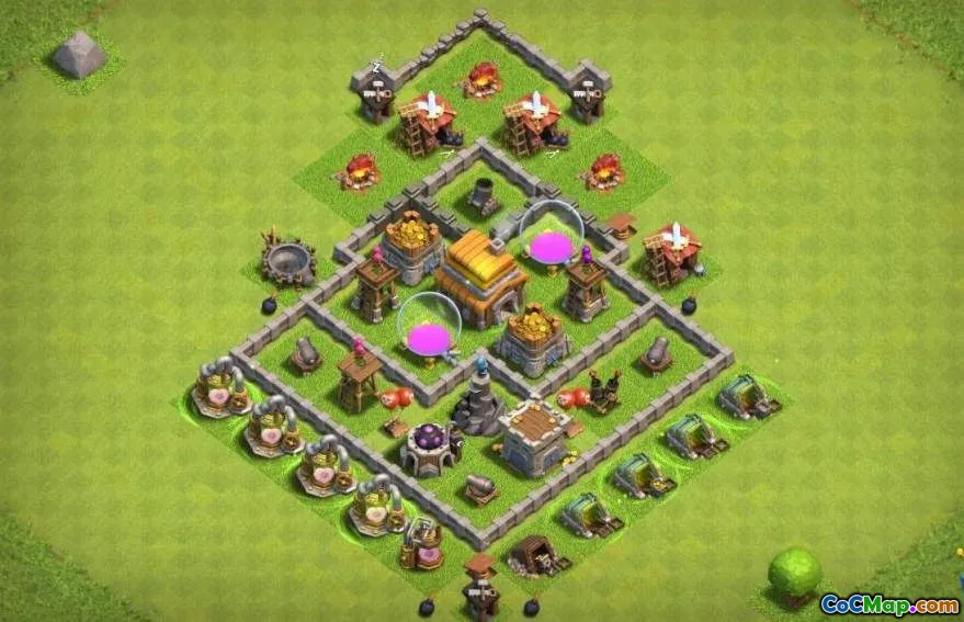 Cộng đồng Clash of Clans tích cực chia sẻ các bố cục cơ sở khác nhau cho Tòa thị chính 5, phục vụ cho các phong cách chơi và mục tiêu chơi khác nhau. Người chơi thường tìm kiếm các thiết kế cụ thể cho các làng quê của họ nhấn mạnh phòng thủ, bảo vệ tài nguyên hoặc kết hợp cả hai. Vị trí của tòa thị chính, cùng với sự sắp xếp chiến lược của các bức tường và các cấu trúc phòng thủ, đóng một vai trò quan trọng trong việc một căn cứ có thể chống lại các cuộc tấn công tốt như thế nào từ những người chơi khác. Bố cục cơ sở tốt có thể cải thiện đáng kể cơ hội thành công của người chơi trong các trận chiến, do đó, người chơi thường tìm kiếm bản đồ cập nhật và hiệu quả.
