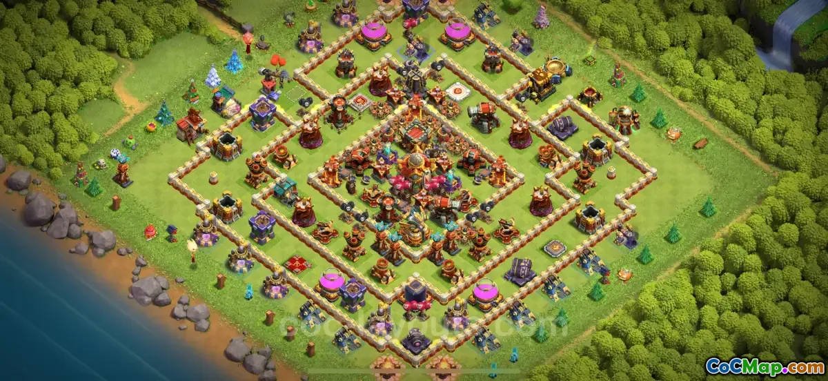 The Best Base TH16 for Clash of Clans is a carefully designed layout intended for Town Hall Level 16 players. This base is specifically classified as a Hybrid base, meaning it effectively balances both defensive strategies and resource protection. The layout is crafted to withstand various attack types, making it a strong contender for players looking to enhance their defense in the game. The year 2025 indicates that it incorporates recent strategies and building placements that reflect the current meta, ensuring it is relevant for players today.