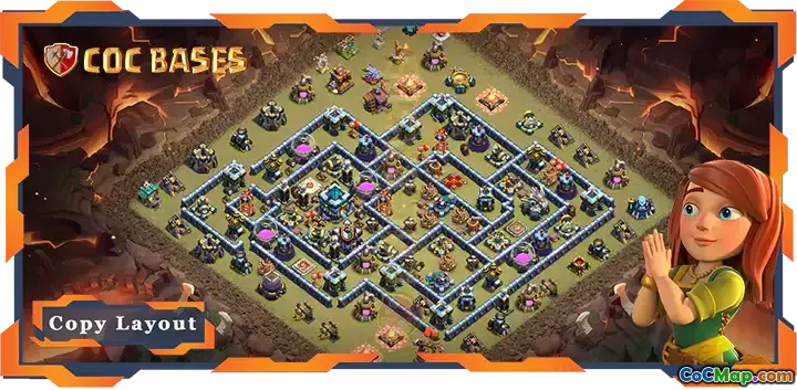 Trong thiết kế căn cứ dành cho Tòa thị chính cấp 13 này, cách bố trí được xây dựng một cách chiến lược nhằm giảm thiểu khả năng đối thủ giành được chiến thắng ba sao. Nó được phân loại cụ thể là bố cục Anti 3 Star và Anti Everything, nghĩa là nó được xây dựng để chống lại nhiều loại tấn công và chiến lược khác nhau thường được những kẻ tấn công sử dụng.