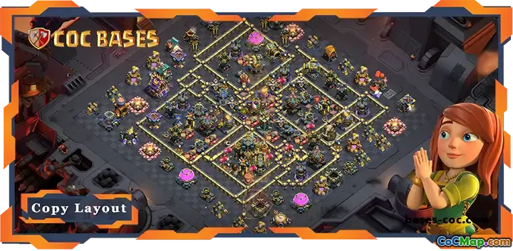 This top-tier TH17 war base layout is crafted to maximize defense against even the most skilled attackers. It strategically arranges defenses, traps, and walls to create a robust barrier that disrupts enemy attack strategies and safeguards your core resources and Town Hall.