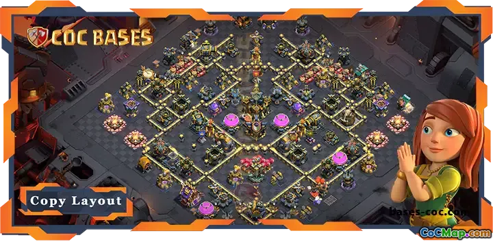 Highly effective for clan wars, this layout emphasizes centralized Eagle Artillery and Clan Castle placement, maximizing defensive coverage. Its balanced design allows for solid defense against various attack strategies, making it an invaluable layout for Clash of Clans players aiming for consistent war success. You can access this layout with the provided link to implement an anti 3-star strategy that boosts your clan’s defense record.