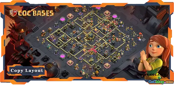 Designed with an anti-3 star approach, this layout minimizes vulnerabilities around the core and employs multi-layered walls and decoy compartments. It is ideal for clans looking to enhance their defense in clan wars. For best results, use the provided sharing link to implement this layout directly, ensuring your base remains highly defensible during intense clan war attacks.