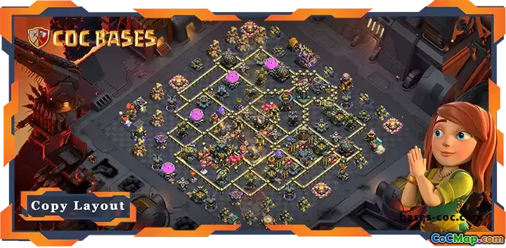 Designed for optimal protection, this layout includes centralized key defenses and compartmentalized sections to slow down enemy troops. Its balanced defense structure ensures resilience against air and ground assaults, making it one of the best options for TH17 war strategies. For easy implementation, a dedicated link is provided that allows quick copying and customization to fit your clan's needs.