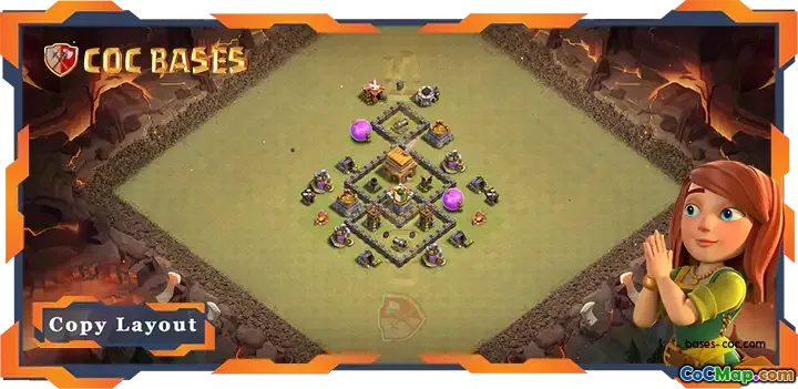 The WarCWL layout enhances clan war performance by optimizing troop paths and defensive coverage. It combines maximum wall levels with a well-organized structure, providing a resilient and effective defense. Use this layout to elevate your TH4 gameplay and clan war success, and explore the provided link to implement this proven design in your own base setup.