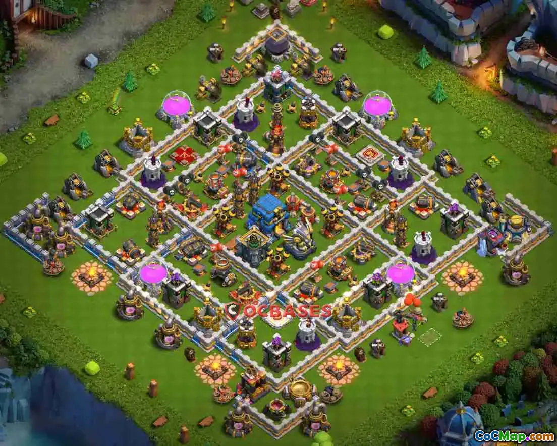 In addition to its defensive strengths, the Town Hall 12 hybrid base is referred to as a "hybrid" base, implying that it is tailored for both trophy pushing and war usage. This hybrid nature allows players to maintain their resources while also having a strong presence in wars. By sharing a copy base link, Thunderhorse1313 provides an easily accessible option for other players to replicate this layout, enhancing their own gameplay experiences within Clash of Clans and contributing to the broader community's knowledge of effective base designs.