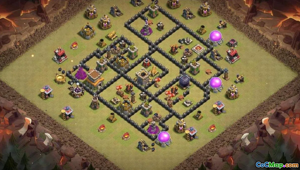The Clash of Clans game features various base layouts, and specifically, for Town Hall 8, players can utilize different strategies to optimize their defenses and resource management in the home village. Players at this level can design layouts that protect their storages and ensure their Town Hall is well-defended against enemy attacks. Effective base designs often include strategic placement of defensive structures such as cannons, archers, and mortars, alongside traps to hinder attackers' advances.