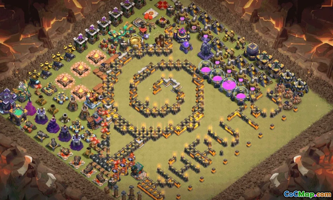 From home village planning to progress farming, this map adapts for upgrades while keeping a lighthearted look. The layout balances resource storages and collectors across compartments, helping protect loot during daily play and guiding you toward the next league. The funny exterior masks a serious defensive core, making it a popular choice in coc map collections.