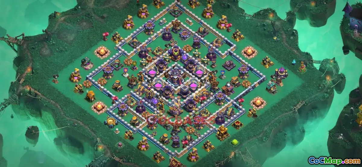 The Town Hall 15 farming base design in Clash of Clans is specifically crafted to help players effectively gather resources while defending their territory. This type of base configuration typically emphasizes protecting key resource storages like gold, elixir, and dark elixir, by strategically placing them in less accessible areas. To maximize farming efficiency, players often utilize a combination of walls, traps, and defensive structures such as archer towers and cannons to deter enemy attacks and minimize resource loss.