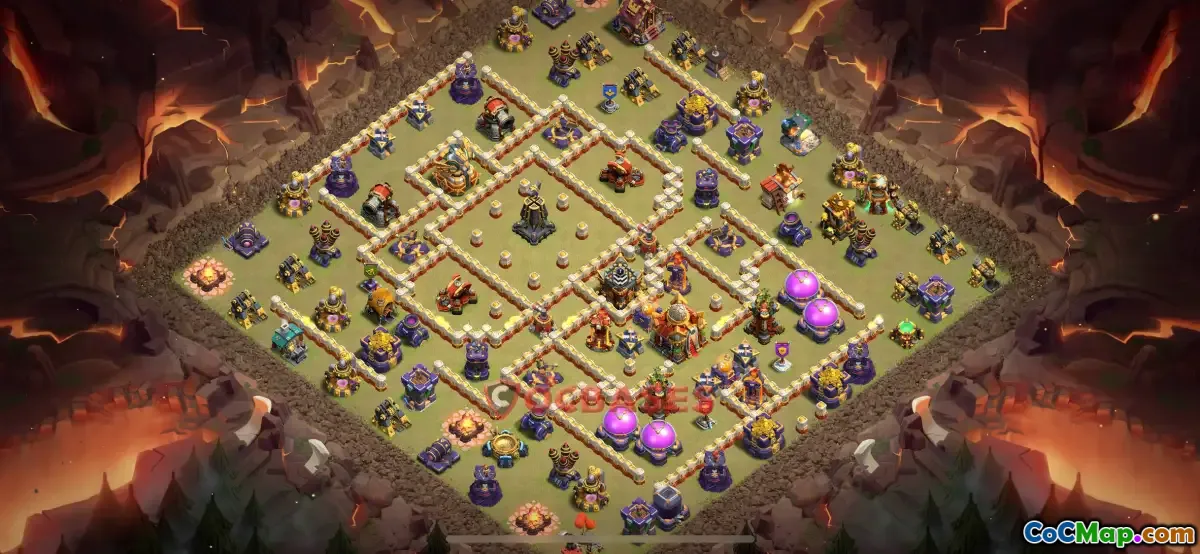 Such bases often feature centralized Town Hall placement to protect it from being easily destroyed, along with well-organized resource storage to prevent opponents from quickly looting a significant amount of resources. The design includes multiple layers of walls and strategically placed defensive structures such as Archer Towers, Cannons, and Air Defense units. These elements work together to create a tough obstacle that minimizes resource loss and withstands high-level attacks.