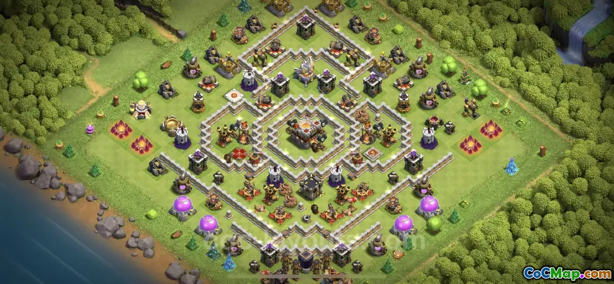 In the context of Town Hall 11 defenses, the layout is structured to counter various forms of attacks. The positioning of key defensive structures, such as air defenses and splash damage units, is optimized to tackle aerial threats effectively. This makes it particularly challenging for enemies who rely on air-based strategies, thus providing a significant advantage to the defending player. The design is crafted to limit the effectiveness of commonly used units while still being flexible enough to adapt to different attacking styles.