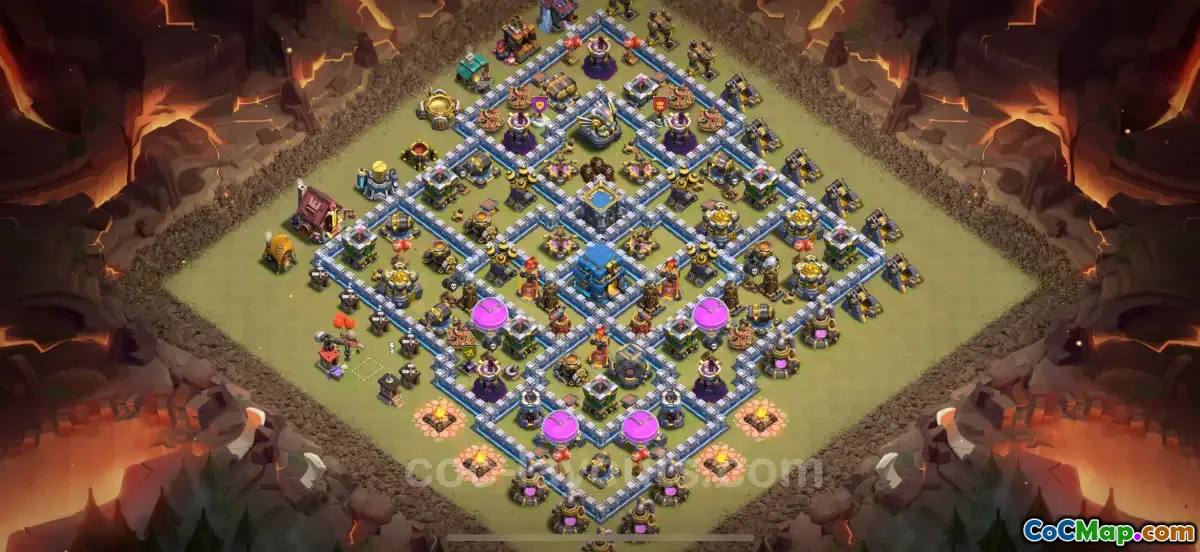 One of the standout features of this base design is its versatility, or its ability to stand up against numerous attack styles. The layout is specifically created to be resilient against units and siege machines that are frequently used during Clan Wars. By concentrating defensive structures in a manner that maximizes their coverage, the layout seeks to ensure that attackers face significant challenges, ultimately leading to failed assaults and defensive success.