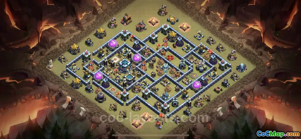A Town Hall 13 (TH13) base designed to prevent three-star attacks in Clan Wars is essential for players looking to strengthen their defenses in Clash of Clans. This base layout focuses on creating a structure that can counter various attack strategies and maximize the difficulty for opponents attempting to secure three stars. The unique design utilizes effective placement of buildings, traps, and defensive structures to create a challenging environment for attackers while ensuring the player's own resources are well-protected.