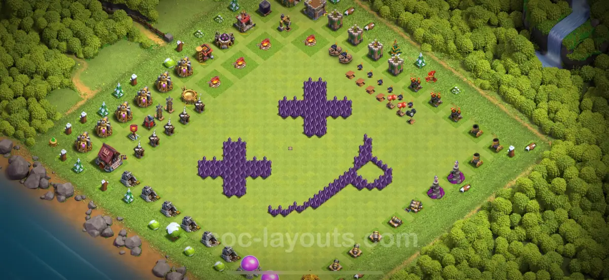 当 7 号市政厅的玩家寻找有效保卫村庄的同时提供欢笑的方法时,这个有趣的巨魔基地提供了一个独特的解决方案。该布局经过战略性安排,旨在吸引攻击者,让他们产生虚假的安全感。有趣的设计选择可能会导致幽默的情况,玩家认为他们轻松获胜,却发现他们的部队不知所措或被困在基地内设置的巧妙陷阱中。