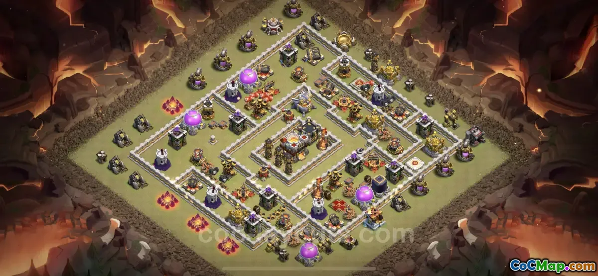 The Best War Base for Town Hall 11 (TH11) in Clash of Clans is designed as an effective defense mechanism against various attack strategies commonly utilized in Clan War Leagues (CWL). This base layout is specifically crafted to protect the Town Hall and important structures from being easily destroyed. The design aims to minimize vulnerabilities, ensuring that players can hold their ground against a wide range of enemy troops, making it a reliable choice for TH11 players seeking a robust defense.