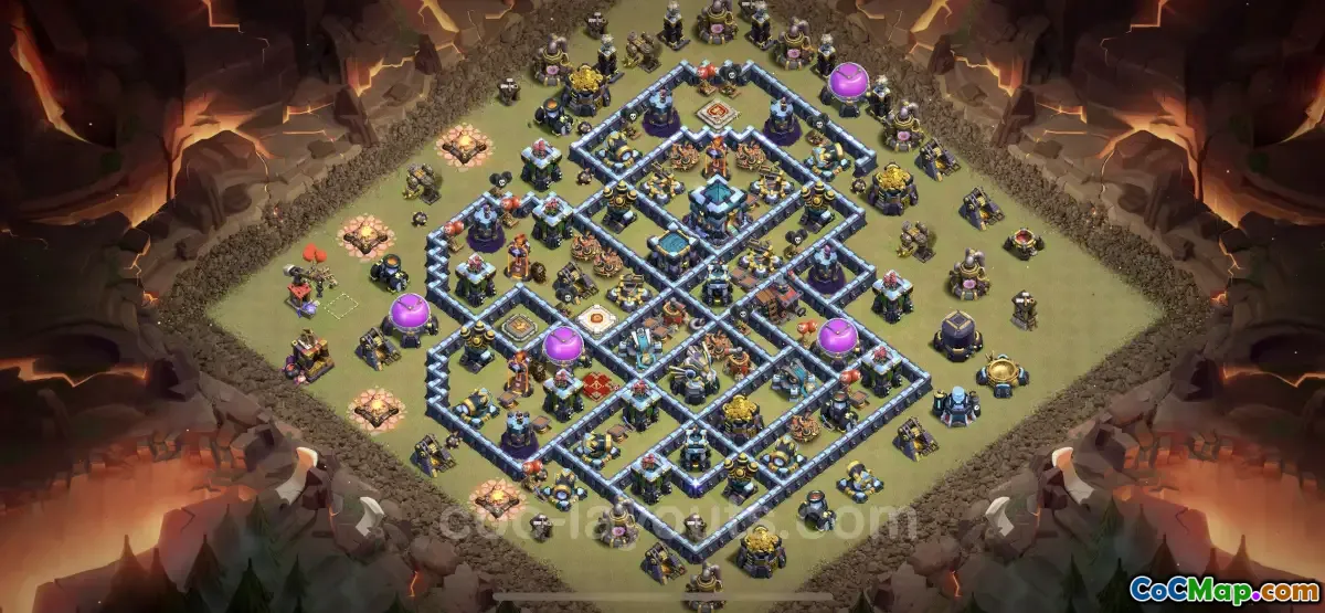 The best anti-three stars war base for Town Hall level 13 is designed to effectively counter attacks from opponents, particularly those utilizing air units such as Electro Dragons. These bases are meticulously crafted to minimize the chances of an adversary achieving a three-star victory, which is critical in Clan Wars. The layout prioritizes strategic placement of defenses, traps, and buildings to create a difficult challenge for attackers, especially those relying on air assault strategies.