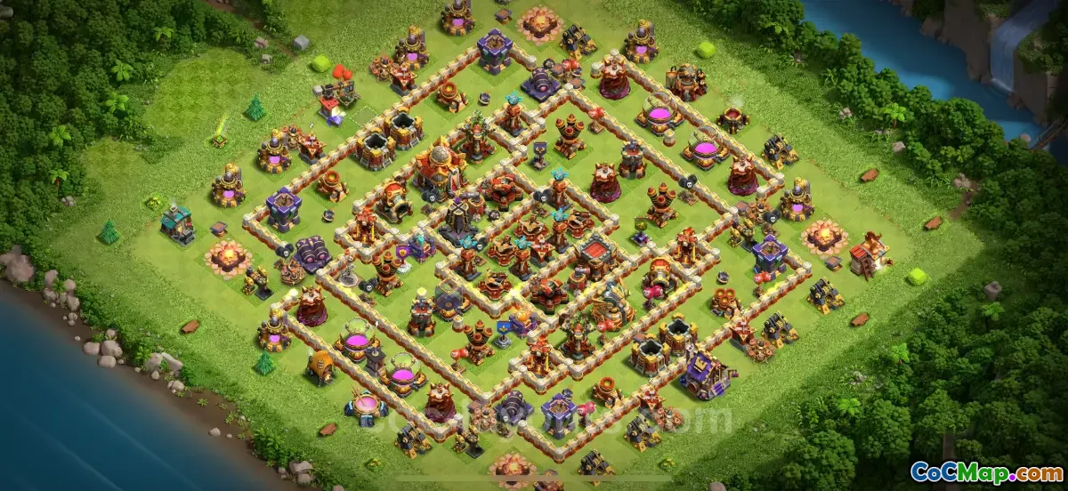 The best anti 3 stars Town Hall 16 (TH16) base design focuses on preventing opponents from achieving a three-star victory in Clash of Clans. These bases are meticulously crafted to distribute defensive structures such as archer towers, cannons, and air defenses strategically across the layout. The primary goal is to create multiple layers of protection around key areas like the Town Hall, resource storages, and storages, making it extremely difficult for attackers to break through and secure a three-star win.