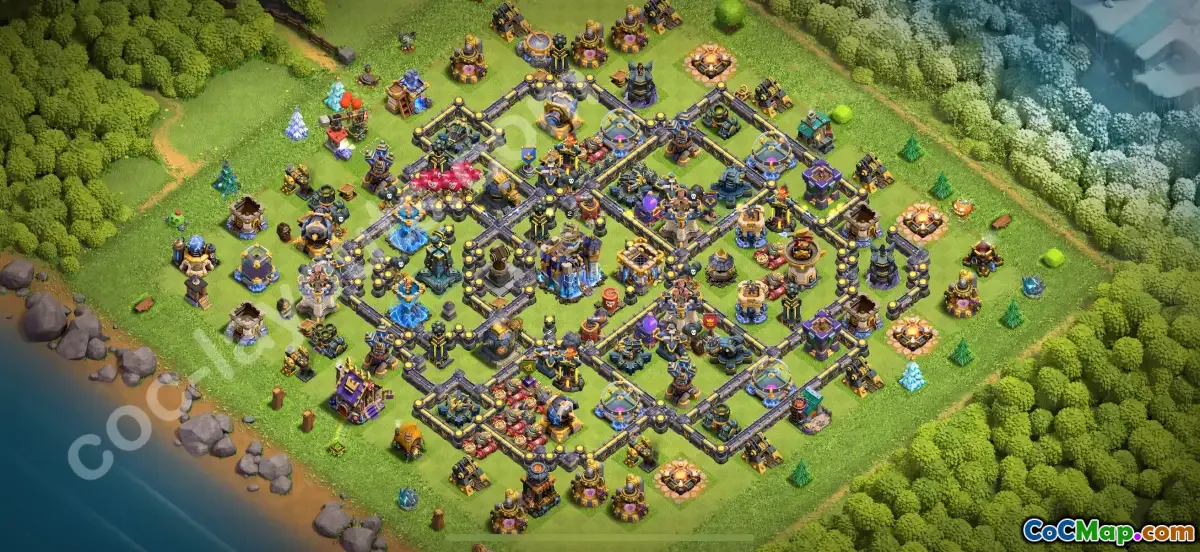 This meticulously designed TH18 base layout is optimized to defend against all attack types, including air, ground, and hybrid assaults. With strategic placement of defenses, traps, and walls, it minimizes vulnerabilities and enhances survivability.
