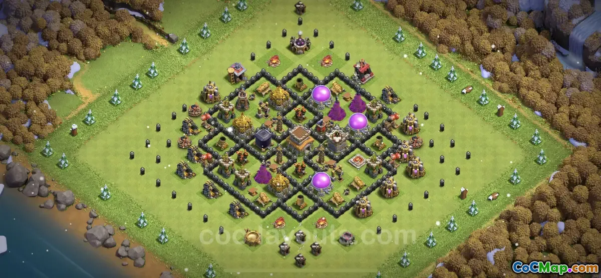 One popular design approach for TH8 bases is creating an anti-air layout. This configuration places key defenses such as air defenses in strategic locations to cover the entire base, making it difficult for attackers to target them successfully. With the ability to fend off air units, particularly dragons, these bases significantly reduce the risk of losing critical resources during an attack. Additionally, traps and defensive buildings are positioned in a way that thematically complements the overall anti-air strategy, further strengthening the base.