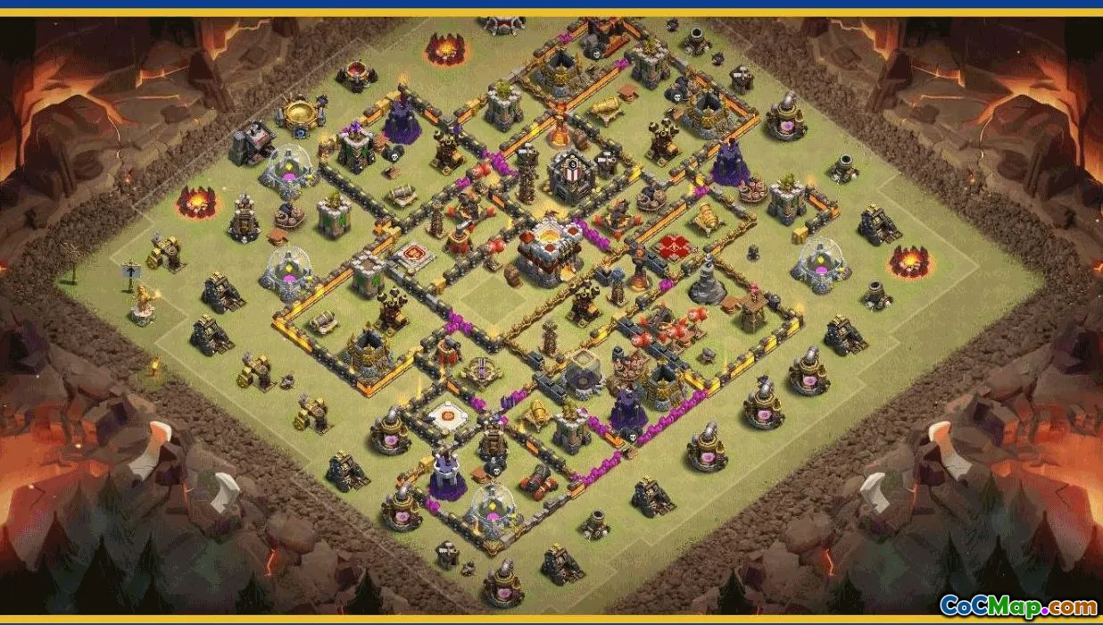 The base layout for Clash of Clans Town Hall 11 is an essential design for players aiming to optimize their defense and offense strategies. This layout typically emphasizes well-protected key structures such as the Town Hall, Clan Castle, and resource storages, often positioning them towards the center of the base. This placement helps in safeguarding important assets from enemy attacks and makes it more difficult for opponents to breach the core defenses.