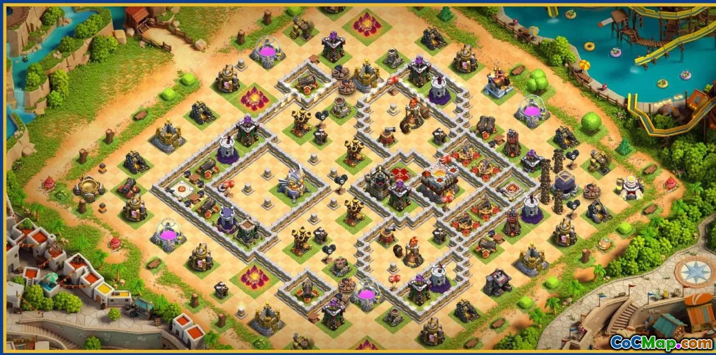 The provided content appears to be centered around various layouts and design strategies for Clash of Clans, specifically tailored for Town Hall 11 players. These layouts include different types of bases such as the home village, trophy base, war base, and map layout. Each type of layout serves a unique purpose, offering players options to defend against attackers, protect trophies, or prepare for clan wars.