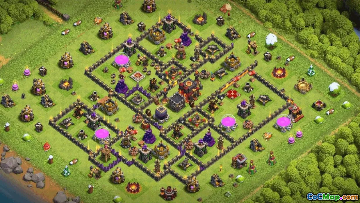 The home village layout is designed to optimize resource protection while maintaining strong defenses against attackers. Trophy bases are crafted to help players climb higher rankings by deterring attacks or maximizing attack opportunities against specific target levels. War bases are also included to ensure maximum defense during clan wars, with strategic placement of walls, traps, and defenses to counter common attack strategies.