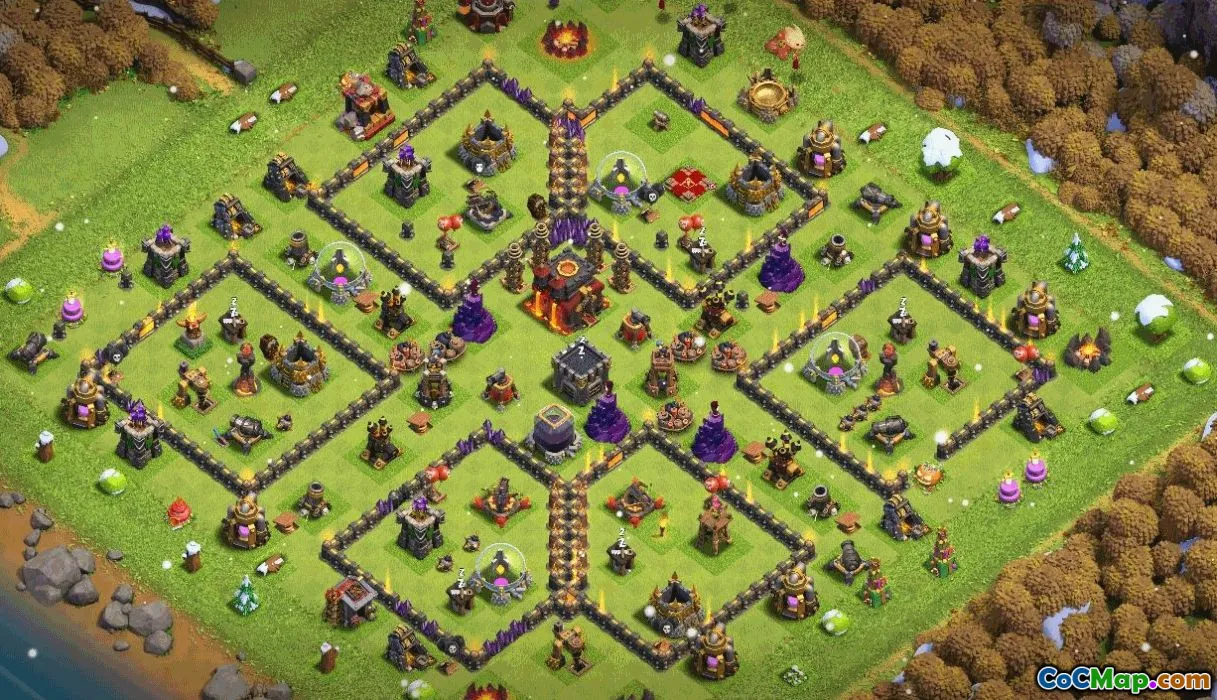 The collection includes different types of bases such as the home village base, trophy base, war base, and COC maps, all aimed at serving different in-game purposes. The home village layout is optimized to prevent attackers from easily breaching defenses, while trophy bases are tailored for players looking to protect or gain trophies depending on their goals. War bases are specially designed to thwart opponent attacks during clan wars, with features to limit the effectiveness of enemy troops and heroes.